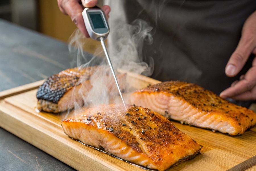 Ten krótki odpoczynek sprawia, że łosoś będzie łatwiejszy do porcjowania, a jego smak i tekstura osiągną pełnię. Najnowsze badania kulinarne z 2025 roku potwierdzają, że ta technika zwiększa soczystość ryby o około 15%.