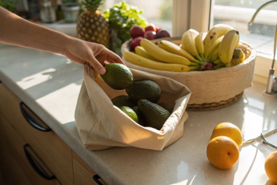 Umieszczenie awokado w ciepłym miejscu, na przykład na nasłonecznionym parapecie, przyspiesza naturalne procesy enzymatyczne. Optymalna temperatura to 20-25°C – wyższe temperatury mogą prowadzić do nierównomiernego dojrzewania lub psucia się owocu.