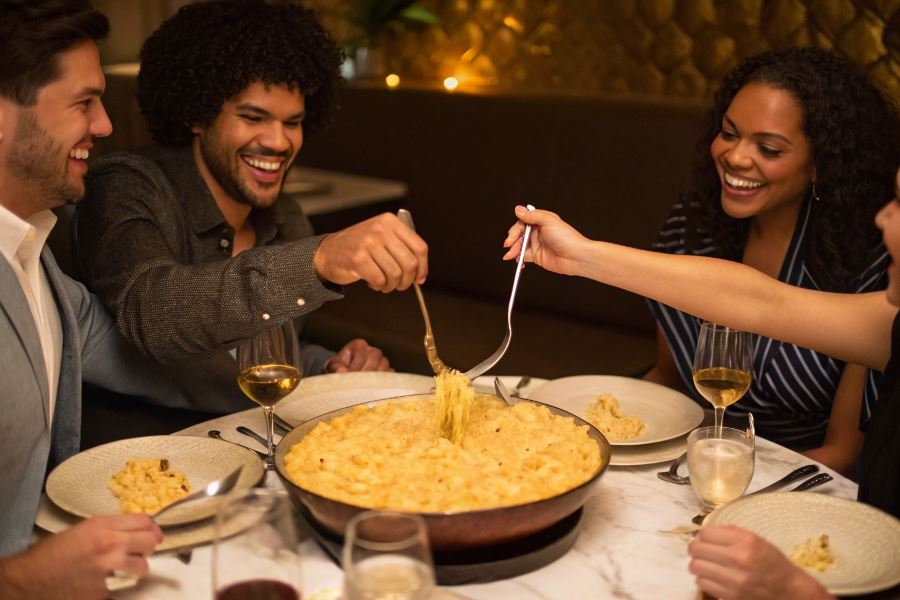 Mac’n Cheese stał się nieoficjalnym symbolem tego trendu dzięki kilku kluczowym cechom: kremowej konsystencji, która zachęca do dzielenia się, wizualnej atrakcyjności (szczególnie gdy ser tworzy charakterystyczne „nitki” przy nabieraniu) oraz możliwości personalizacji dodatkami, co sprawia, że każdy uczestnik spotkania może dostosować danie do własnych preferencji.