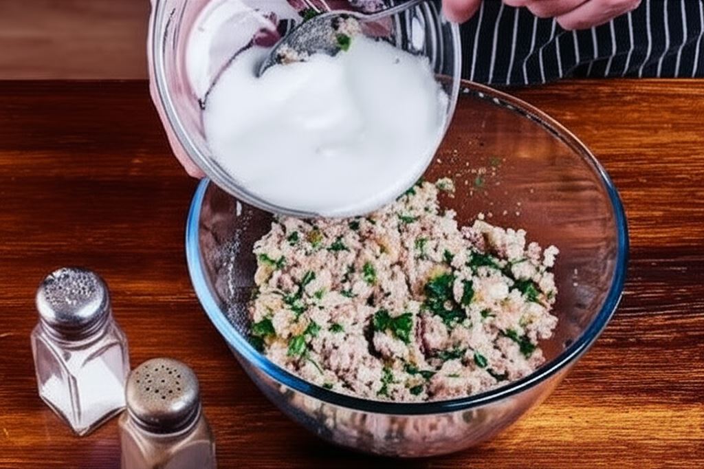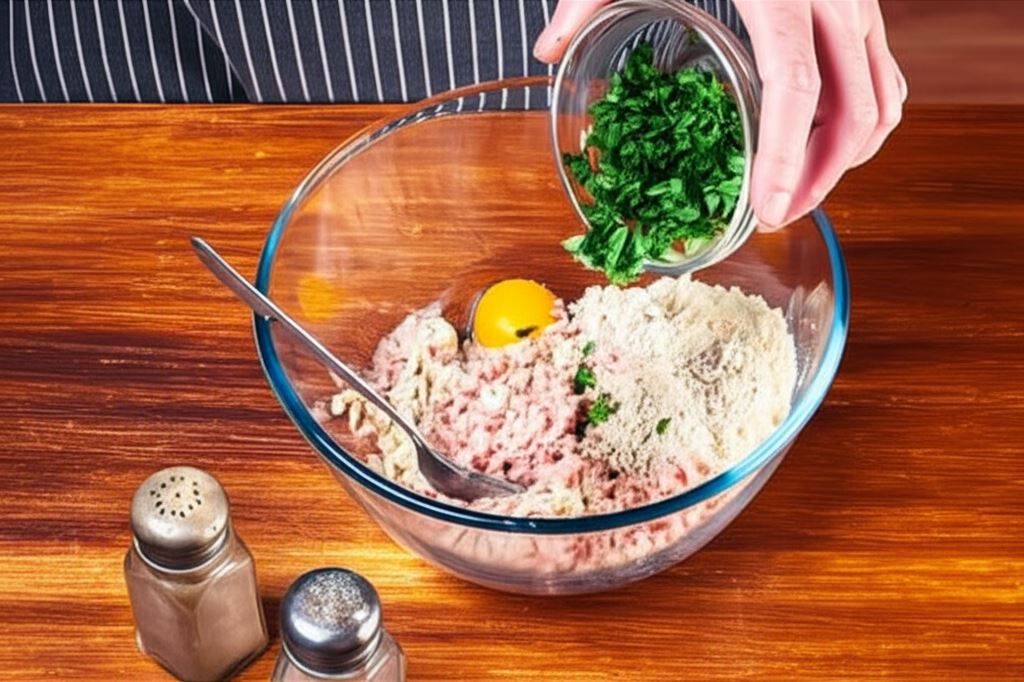 Potem wraz z rybą przetwórz przez maszynkę, wsyp żółtko, sól, pieprz, bułkę tartą i posiekaną natkę pietruszki.