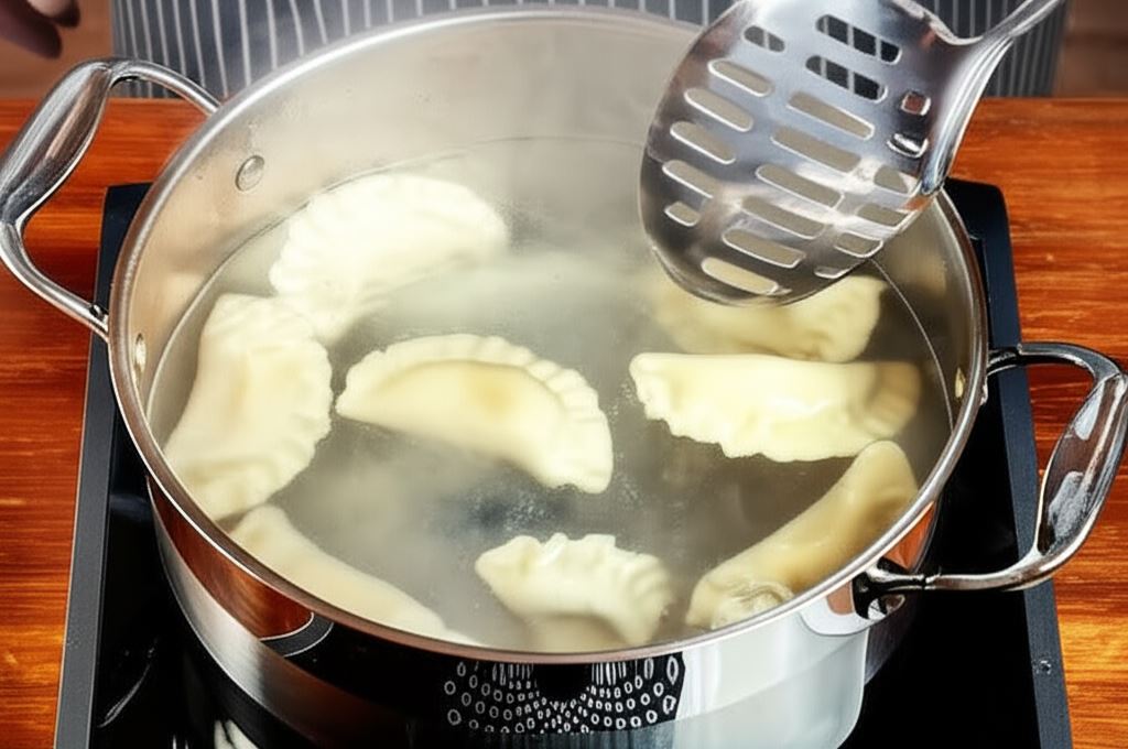 Gotuj porcjami w osolonej wrzącej wodzie około 2 minut od momentu wypłynięcia.