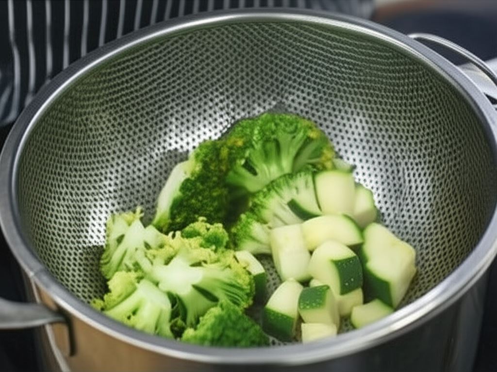 Przygotuj na parze warzywa (brokuł i cukinię).
