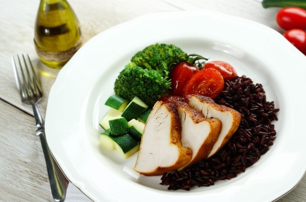 Soczysta pierś z indyka z warzywami i brązowym ryżem
