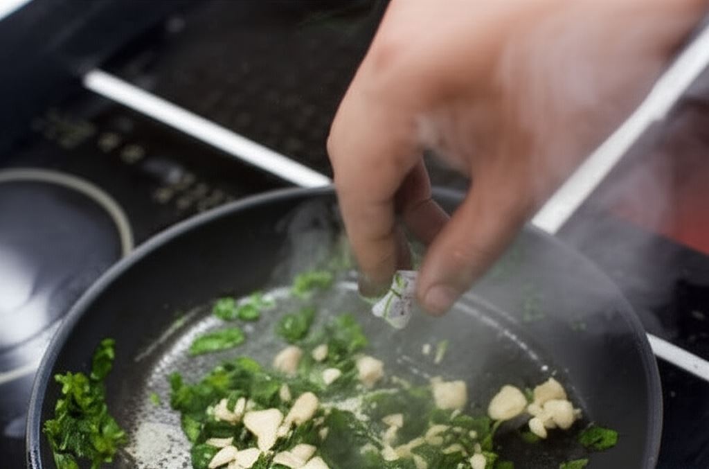 Szpinak po odmrożeniu odcedź i posiekaj.