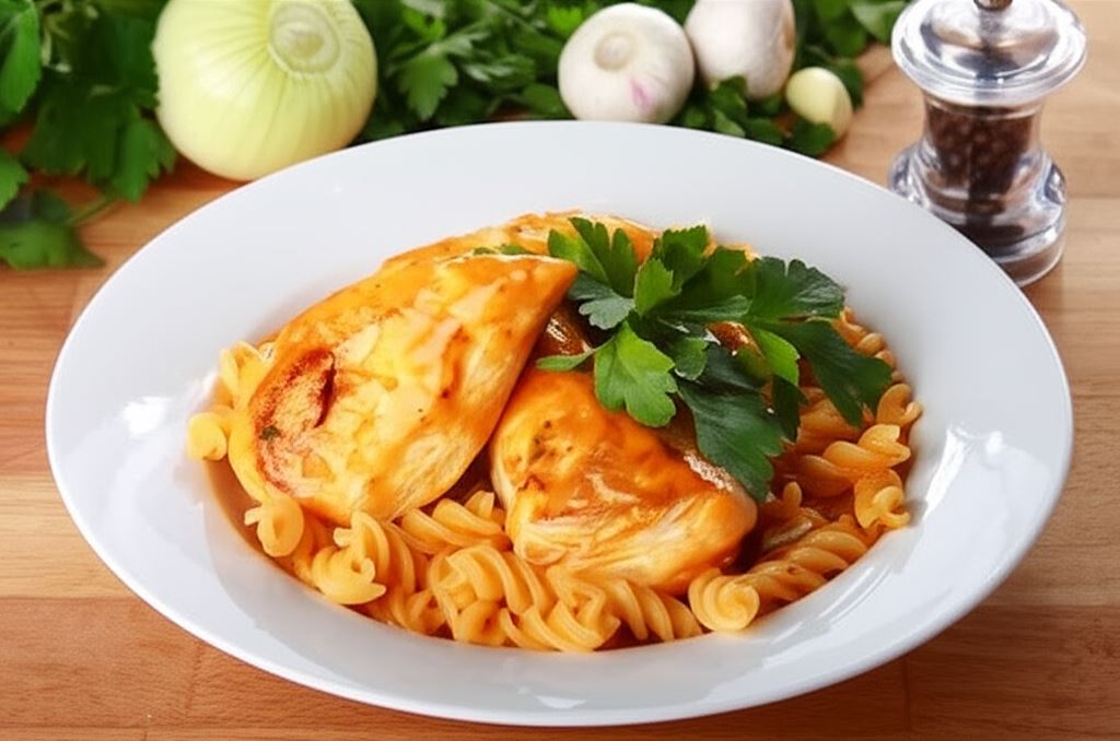 Piersi z kurczaka w sosie po baskijsku to idealna propozycja dla miłośników śródziemnomorskich smaków oraz osób poszukujących szybkiego, a jednocześnie wyjątkowego dania na codzienny obiad. Aksamitny sos śmietanowo-paprykowy otula delikatne mięso kurczaka, tworząc harmonijne połączenie, które zadowoli nawet najbardziej wymagające podniebienia.