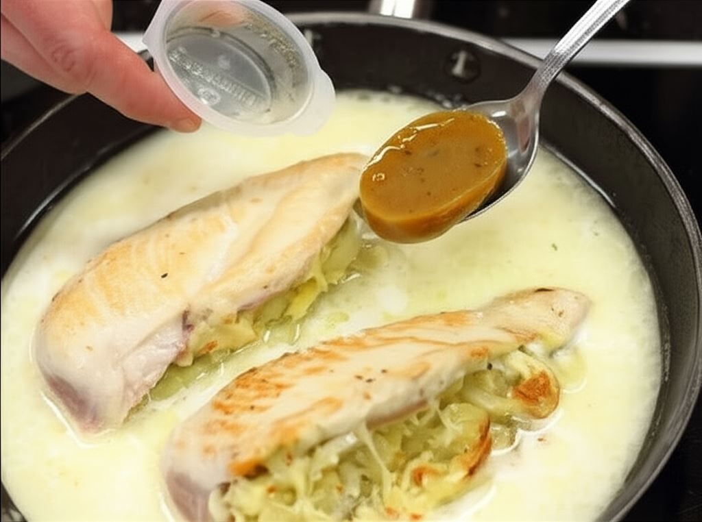 Soczyste piersi z kurczaka nadziewane aromatyczną mieszanką sera i podsmażonej cebuli to prawdziwa uczta dla podniebienia! Mięso delikatnie obsmażone, a następnie duszone w kremowym sosie ze śmietaną zachwyca smakiem i soczystością. Wystarczy zrobić nacięcie w mięsie, wypełnić je smakowitym nadzieniem, oprószyć mąką i obsmażyć do złotego koloru. Całość dopełnia aksamitny sos przygotowany na bazie Sosu do pieczeni jasnego Knorr, który idealnie komponuje się z delikatnym mięsem drobiowym. To danie, które zachwyci każdego domownika!