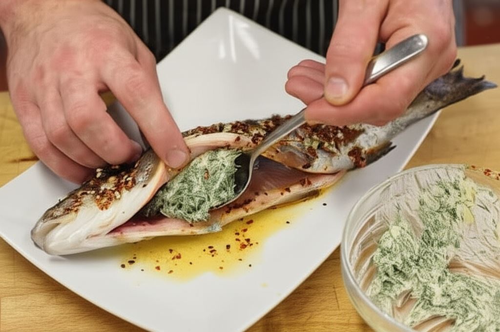 Sekret tej potrawy tkwi w starannie dobranej marynacie z oliwy, czosnku i aromatycznych przypraw Knorr, która przenika mięso ryby, nadając jej głęboki, wyrazisty smak. Dodatek masła ziołowego z koperkiem wzbogaca wnętrze pstrąga, sprawiając, że każdy kęs rozpływa się w ustach.