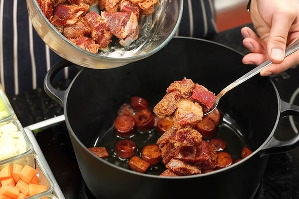 Sekret tego dania tkwi w powolnym gotowaniu, które pozwala wszystkim składnikom wzajemnie się przenikać. Najpierw wytapiamy tłuszcz z aromatycznego chorizo, następnie dodajemy mięso obtoczone w mące, a potem kolejno warzywa, które nabierają głębi smaku. Całość dopełnia pasta chili, nadająca potrawie charakterystycznej pikantności.