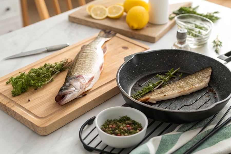 Sekret szefów kuchni: Aby uniknąć wysuszenia, warto smażyć szczupaka w temperaturze nieco niższej niż standardowo stosowana do innych ryb – mięso szczupaka jest chudsze i łatwiej traci wilgoć.