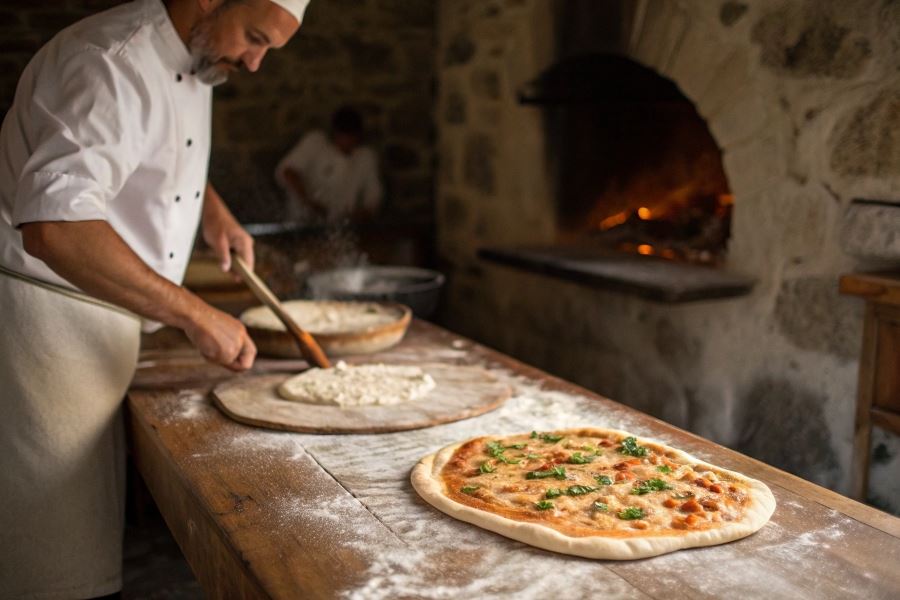 Starożytni Rzymianie przygotowywali pinsę z mieszanki mąki z orkiszu, jęczmienia i prosa, dodając do niej sól i wodę. Ciasto fermentowało naturalnie przez wiele godzin, co nadawało mu charakterystyczną lekkość. Archeologiczne znaleziska potwierdzają, że podobne wypieki były popularne w całym Imperium Rzymskim, a ich receptury przekazywano z pokolenia na pokolenie.