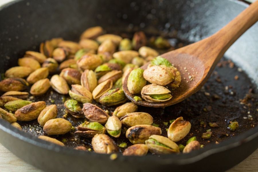 Prażenie pistacji na patelni