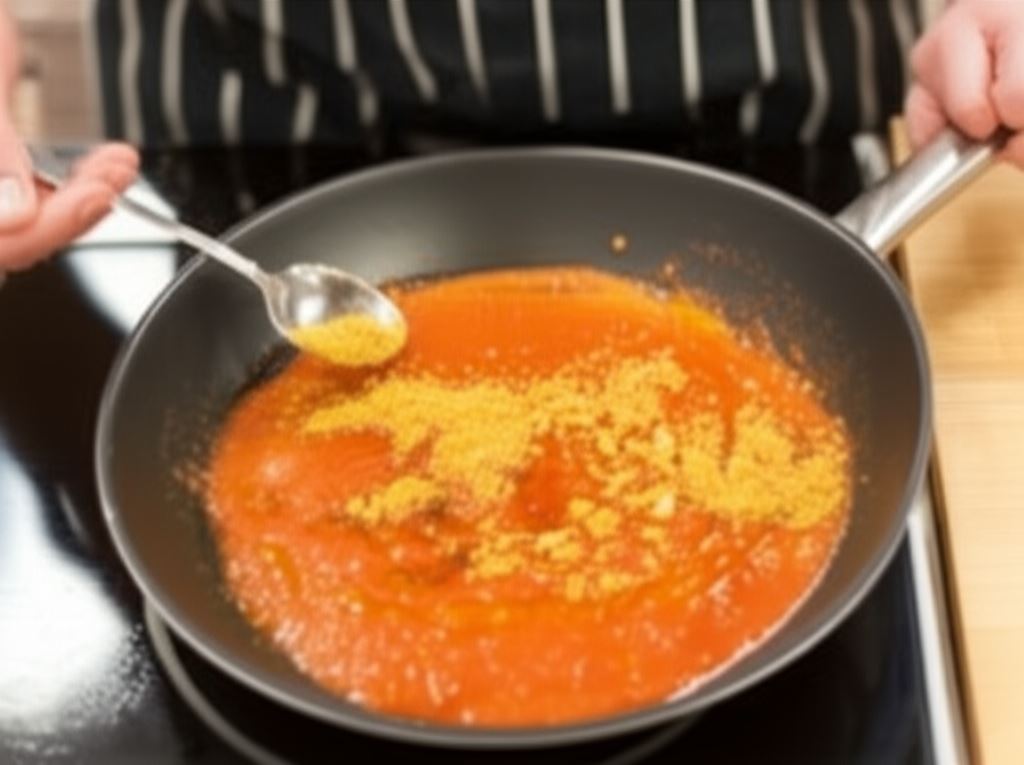 Zanim rozpoczniesz pracę, rozgrzej piekarnik do 250°C – uruchom obydwie grzałki dolną i górną. Na patelnię wlej zblendowane pomidory z puszki, a aby sos był perfekcyjnie doprawiony dodaj Knorr Naturalnie smaczne - Spaghetti Bolognese, dolej 50 ml oliwy i doprowadź do wrzenia.