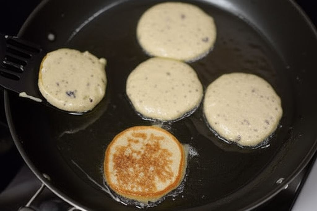 Podgrzej delikatnie olej na szerokiej patelni i smaż okrągłe placki przez kilka minut z obu stron. Powinny być chrupkie i zrumienione.