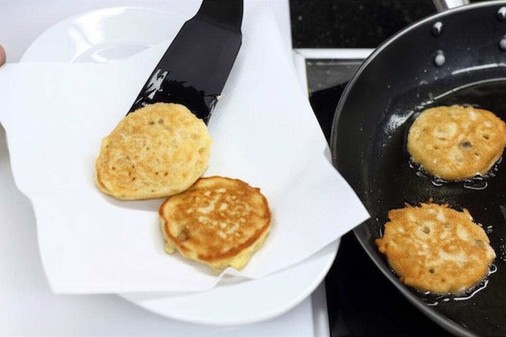 Po wysmażeniu placuszków, osusz je z nadmiaru tłuszczu na papierowym ręczniku. Serwuj ze świeżymi owocami.