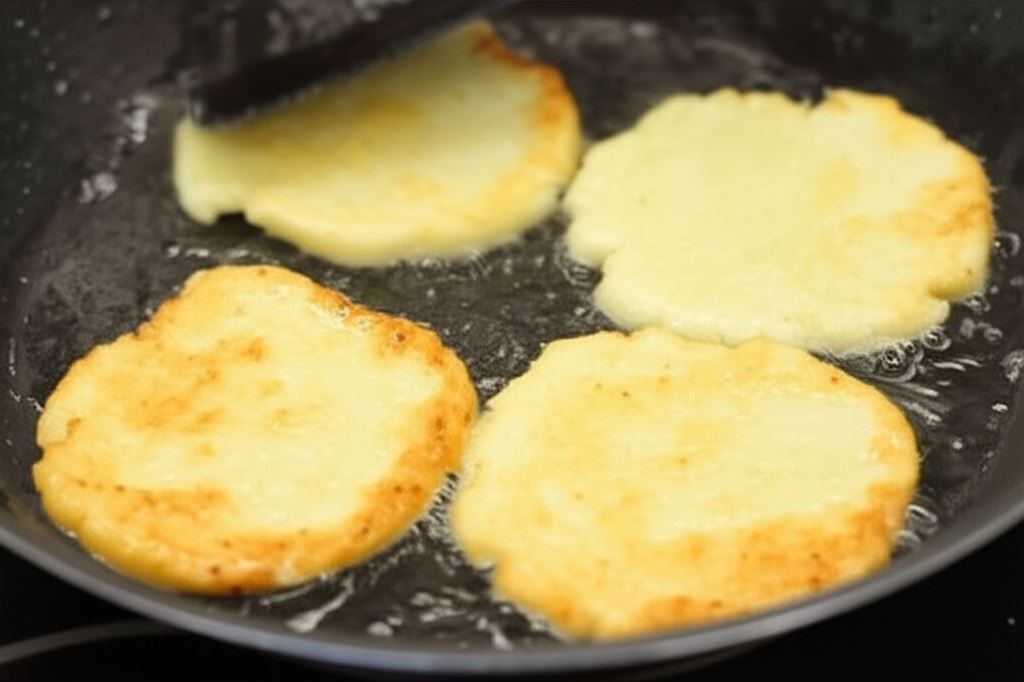 Potem smaż na oleju okrągłe placuszki. Kiedy uzyskają złocisty kolor i staną się chrupiące, osącz je na papierowym ręczniku.