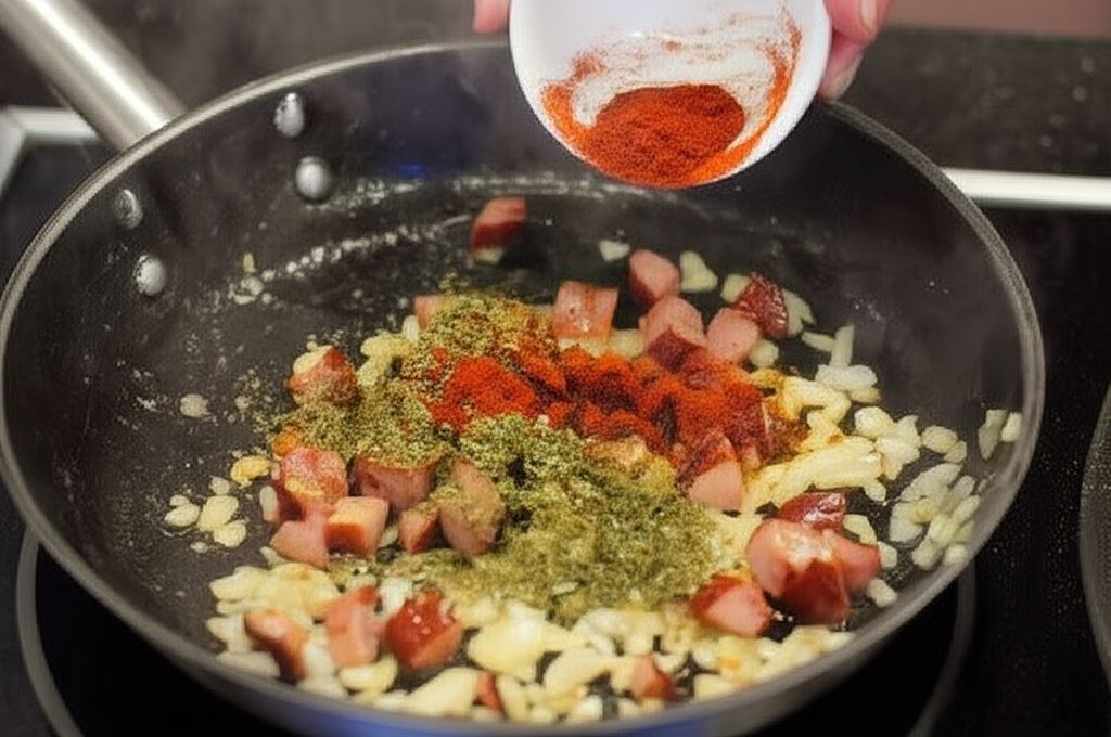 Po krótkim smażeniu wsyp przyprawy i zaczekaj, aż uwolnią aromat.