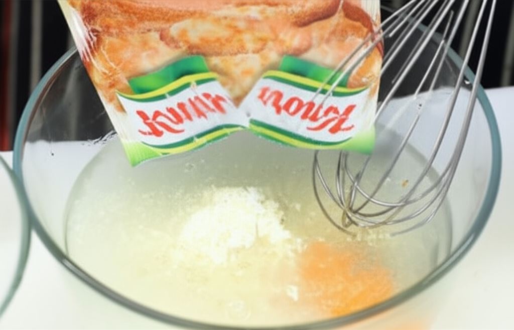 Zawartość saszetki Knorr połącz z mlekiem i jajkiem, odłóż na moment, aby masa zgęstniała.