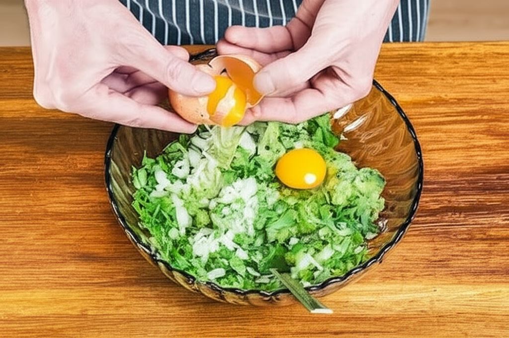 Przygotuj miskę. Umieść w niej po kolei odcedzoną z nadmiaru wody cukinię, cebulę i pietruszkę. Wsyp kurze jaja oraz wcześniej przygotowaną mąkę. Mieszając starannie połącz wszystkie składniki razem. Przypraw solą, pieprzem oraz Przyprawą Włoskie Zioła Knorr.