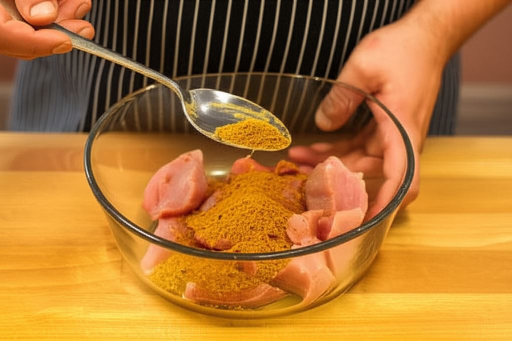 Polędwiczki wieprzowe oczyść z błonek i nadmiaru tłuszczu i pokrój na plastry o grubości 1 cm. Połącz je z oliwą i Przyprawą do mięsa wieprzowego Knorr, która nada kotletom delikatny ziołowo-korzenny aromat i zapewni, że pozostaną soczyste. Każdy kotlecik przyrumień na patelni z obu stron.