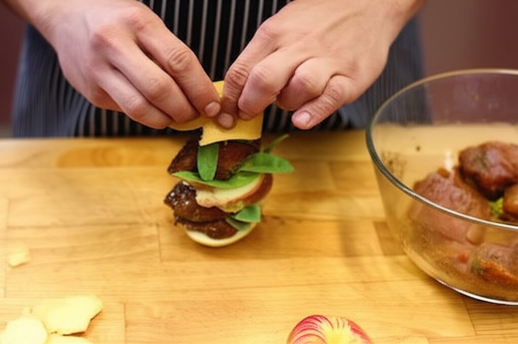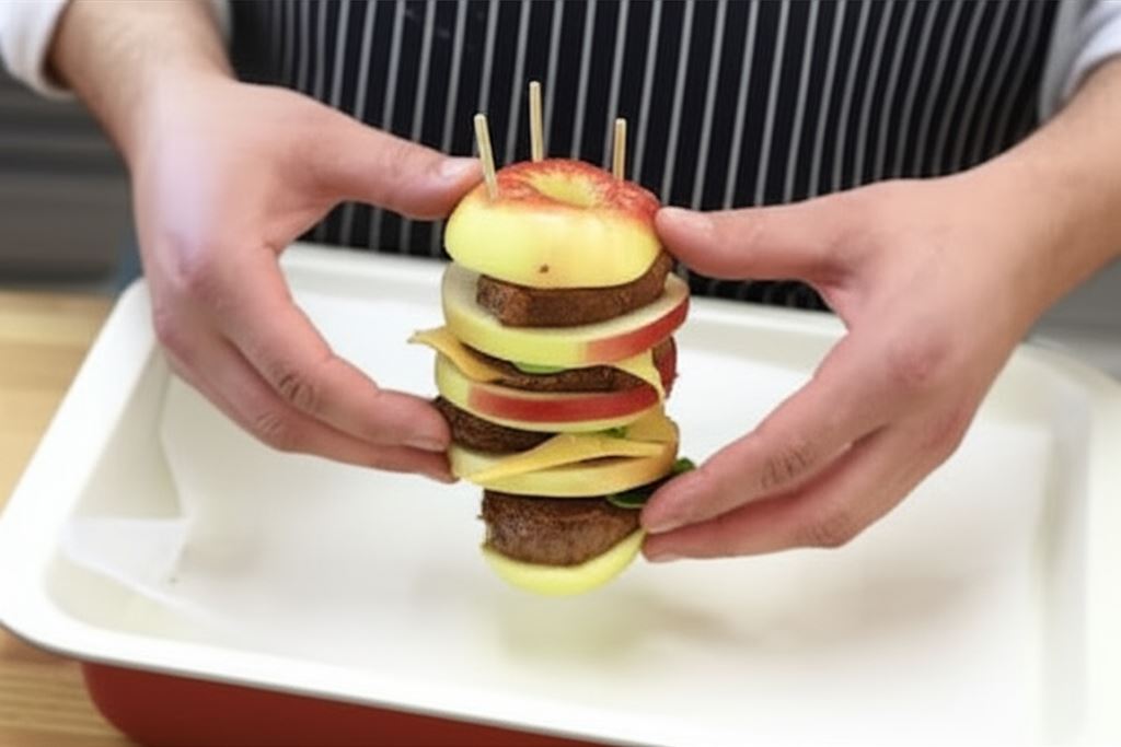 Styl hasselback wywodzi się ze sposobu przyrządzania ziemniaków, gdzie warzywa nacina się w charakterystyczny sposób. W przypadku naszej polędwicy, technika ta pozwala na idealne połączenie mięsa z dodatkami, dzięki czemu każdy kęs oferuje pełnię smaku. Jabłka dodają słodyczy i kwaskowatości, idealnie równoważąc smak mięsa.