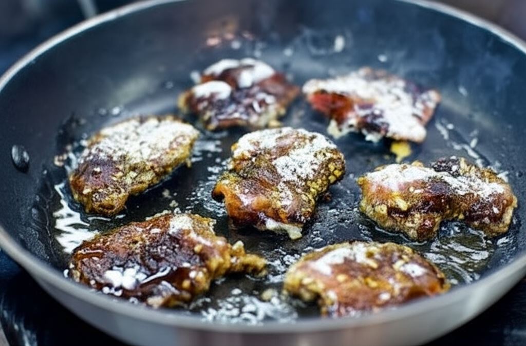 Rozgrzej olej na patelni. Obtocz kawałki mięsa w mące i od razu smaż, dopóki nie uzyskają rumianego koloru.