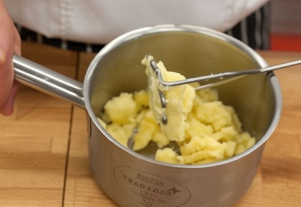 Obierz ziemniaki. Ugotuj je w delikatnie osolonej wodzie i zrób purée.