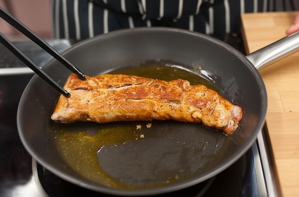 Mięso oczyść z błon i żyłek, posyp przyprawą do mięsa, przyrumień na patelni na gorącym oleju.