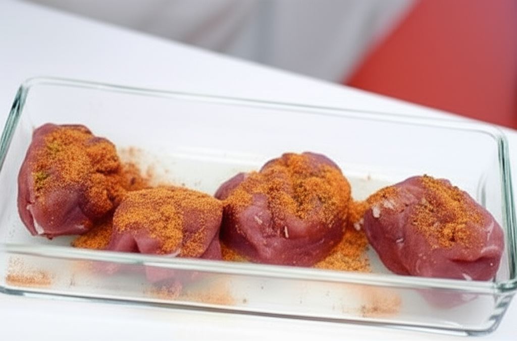 Polędwiczki opłucz, osusz i pokrój na mniejsze medaliony. Przypraw je mieszanką do mięs Knorr i owiń plastrami boczku. Całość przebij wykałaczkami, a następnie odstaw do chłodnego miejsca.