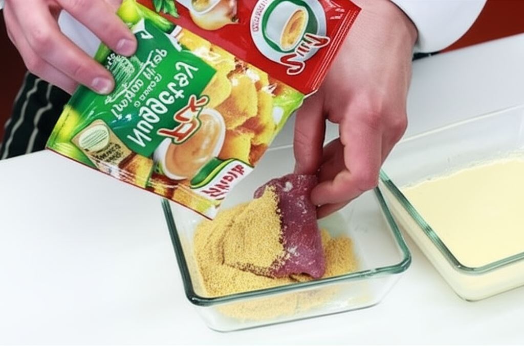 Mięso owiń dookoła tworząc koperty. Mięso zanurzaj w rozbitym z mlekiem jajku. Kotlety panieruj w Fixie Knorr.