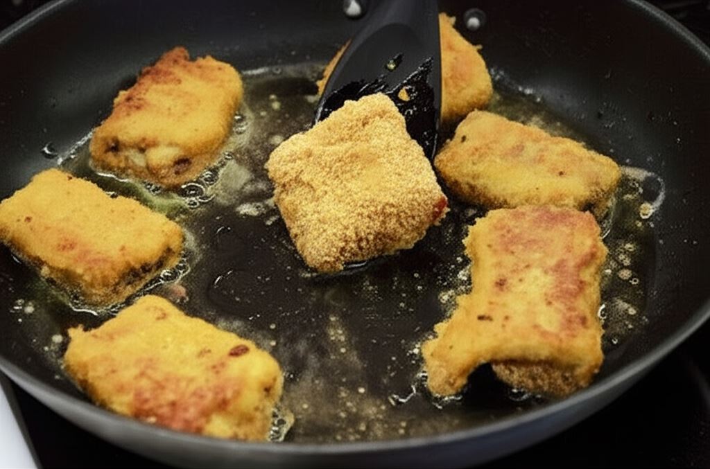 Obsmażaj panierowane kotleciki na patelni z obu stron do złotego koloru.