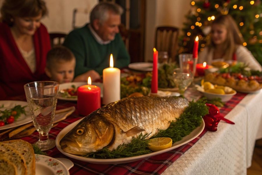 Karp na wigilijnym stole to stosunkowo młoda tradycja w Polsce, sięgająca zaledwie lat 50. XX wieku. Wcześniej na świątecznych stołach gościły głównie inne ryby słodkowodne, jak szczupak, lin czy karaś. Masowa hodowla karpia rozpoczęła się w Polsce po II wojnie światowej jako element gospodarki planowej, gdy władze promowały tę rybę jako dostępne źródło białka. Do 2025 roku tradycja ta zdążyła się jednak głęboko zakorzenić w polskiej kulturze, stając się nieodłącznym elementem Wigilii.