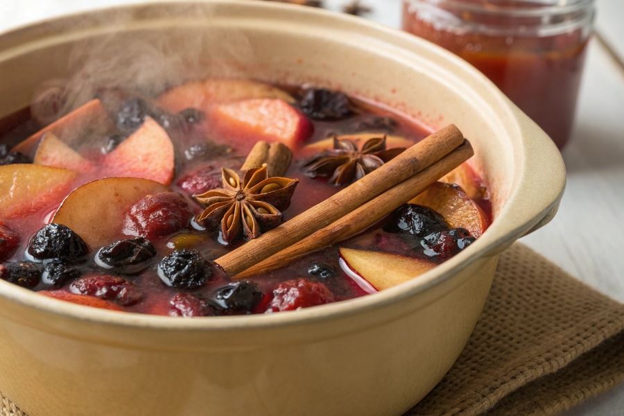 - Przyprawy (15-20 minut) – goździki, cynamon, ziele angielskie i liść laurowy dodaj w ostatniej fazie gotowania.