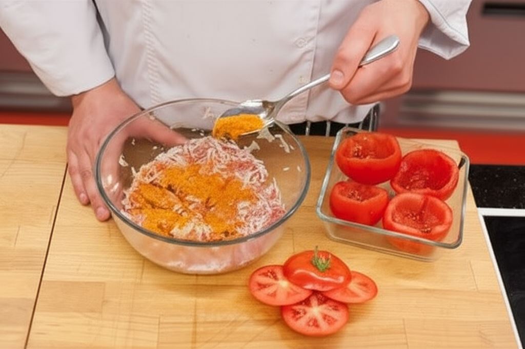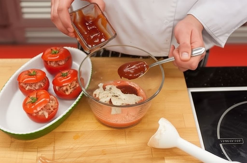 Pomidory to nie tylko dodatek do kanapek i sałatek! Te soczyste warzywa doskonale nadają się do faszerowania, a podczas pieczenia zyskują głębszy, intensywniejszy smak. Podwójnie pomidorowy sos, przygotowany ze zmiksowanych resztek pomidorów i ketchupu, nie tylko zapobiega marnowaniu żywności, ale także wzbogaca danie o dodatkową warstwę smakową.