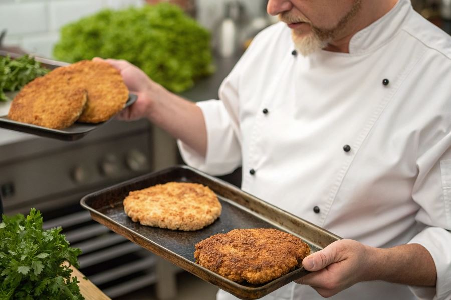 Panierka tradycyjna (mąka, jajko, bułka tarta) dodaje około 80-120 kcal do każdego kotleta, stanowiąc nawet 30% jego całkowitej wartości energetycznej. Tłuszcz używany do smażenia ma kluczowe znaczenie – kotlet smażony na głębokim oleju absorbuje dodatkowo 40-60 kcal na każde 100g, podczas gdy przygotowany na teflonowej patelni z minimalną ilością tłuszczu może zaoszczędzić nawet 100 kcal.