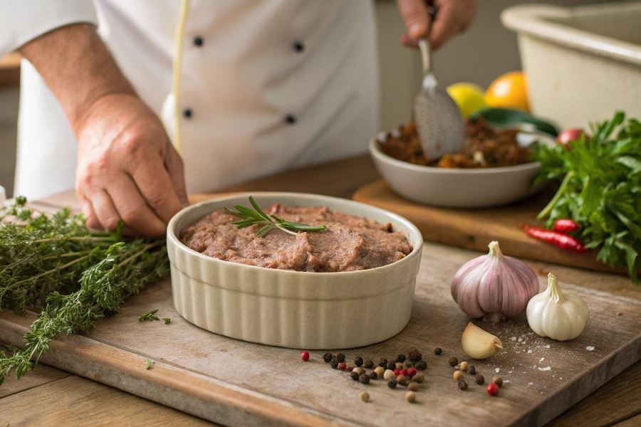Masa pasztetowa wymaga dokładnego wymieszania z jajkami, bułką tartą namoczoną w mleku oraz przyprawami (majeranek, gałka muszkatołowa, pieprz, sól). Sekret idealnej konsystencji tkwi w dodaniu 100 ml śmietany kremówki na każdy kilogram masy.