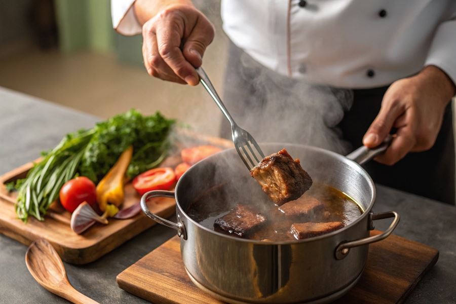 Idealnie ugotowane żeberka można rozpoznać po tym, że mięso łatwo odchodzi od kości przy delikatnym nacisku widelcem. Wywar powinien mieć mleczno-kremowy odcień i bogaty aromat. Aby uzyskać klarowny wywar, warto: