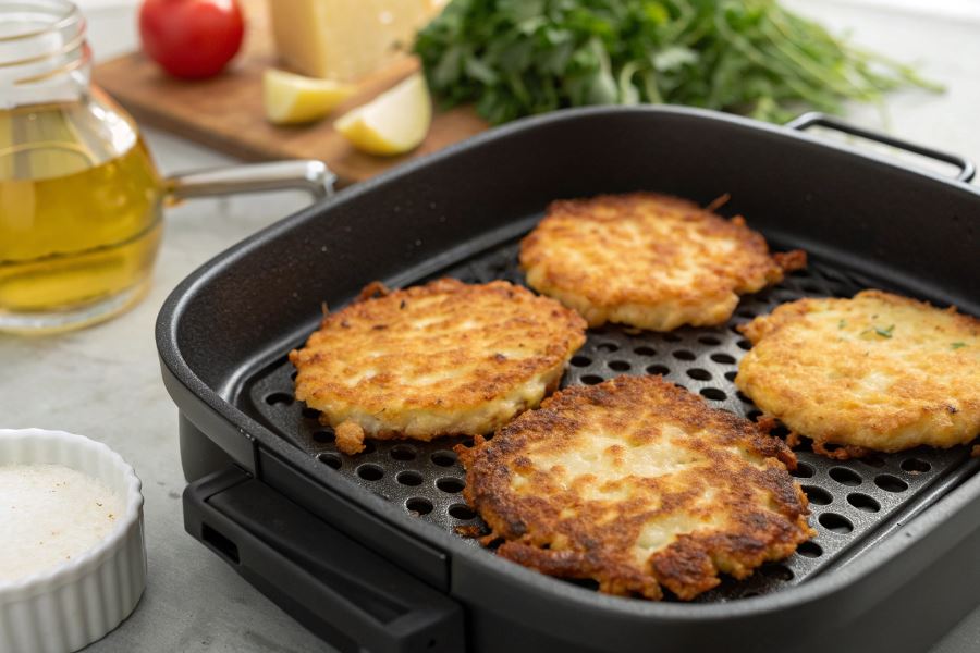 Placki ziemniaczane z airfryer zachowują soczystość wewnątrz przy jednoczesnym uzyskaniu chrupiącej skórki, a co najważniejsze – zawierają znacznie mniej tłuszczu niż te smażone tradycyjnie na patelni.