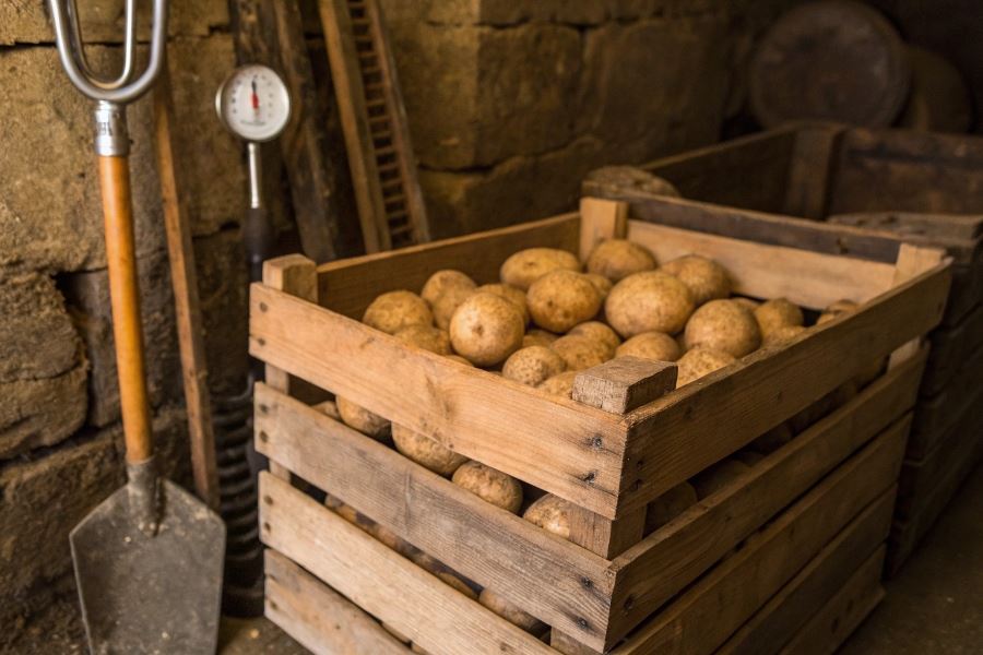 - Regularne kontrolowanie stanu przechowywanych ziemniaków (co 2-3 tygodnie)