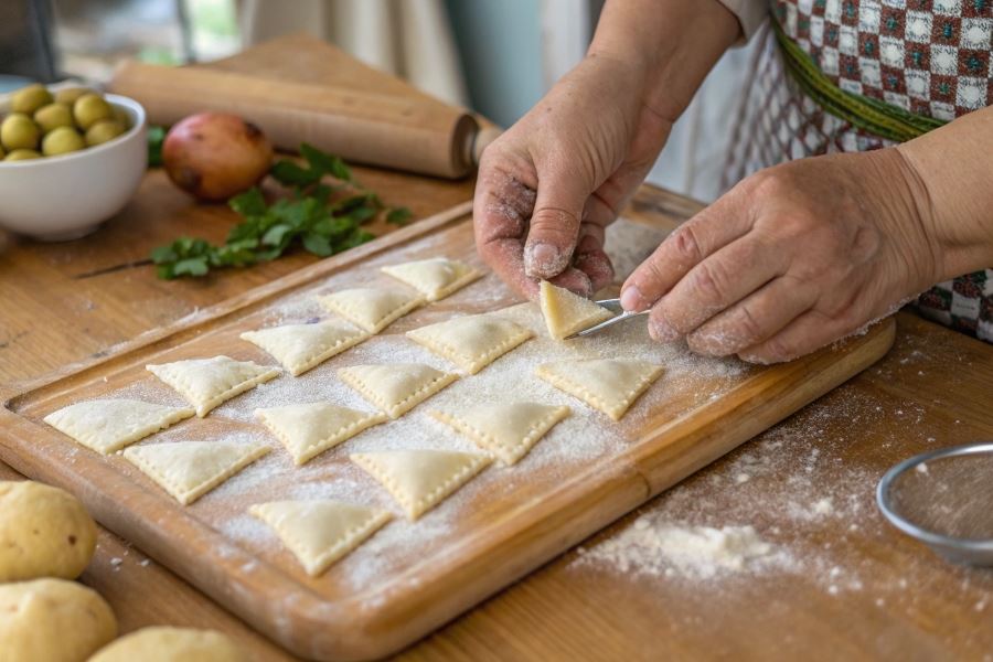 Wskazówka eksperta: Aby szagówki nie kleiły się do noża i deski, posyp powierzchnię roboczą niewielką ilością mąki. Zbyt dużo mąki może jednak sprawić, że kluski będą twarde po ugotowaniu.