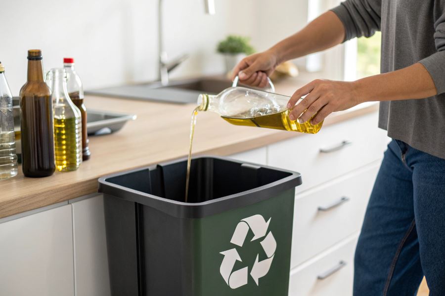 Zużyty olej należy przechowywać w chłodnym, zacienionym miejscu, z dala od źródeł ciepła i światła słonecznego. Maksymalny czas przechowywania przed oddaniem do utylizacji nie powinien przekraczać 1 miesiąca, gdyż dłuższe składowanie prowadzi do jełczenia i wydzielania nieprzyjemnego zapachu.