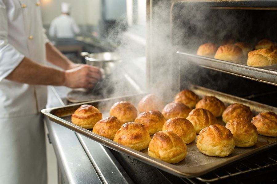 Ciasto parzone (pâte à choux) to wyjątkowy rodzaj ciasta, który przechodzi dwuetapową obróbkę termiczną – najpierw parzenie na kuchence, a następnie pieczenie w piekarniku. Ta technika nadaje mu charakterystyczną strukturę – chrupiącą z zewnątrz i lekko wilgotną wewnątrz, co czyni je idealnym wyborem do przygotowania pasztecików.