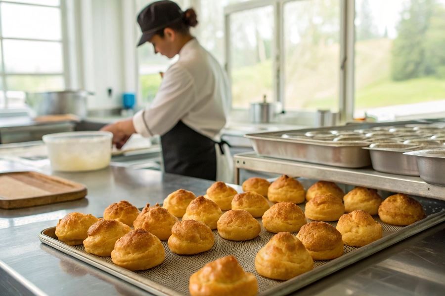 Przygotowanie ptysiów z wyprzedzeniem to strategia, która przynosi wiele korzyści zarówno domowym cukiernikom, jak i profesjonalistom. Oszczędność czasu w dniu serwowania to najbardziej oczywista zaleta – upieczone wcześniej ptysie wymagają jedynie nadzienia przed podaniem. Dodatkowo, wypieczone z wyprzedzeniem ciasto ptysiowe ma szansę lepiej ustabilizować swoją strukturę, co przekłada się na bardziej chrupiącą skorupkę i mniejsze ryzyko zapadania się po upieczeniu.