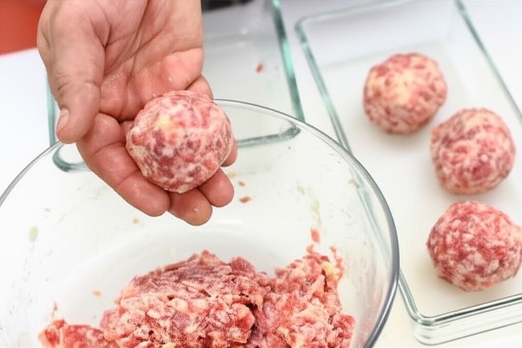 Potem uformuj pulpeciki i umieść je na dużym talerzu. Talerz z pulpecikami wstaw do lodówki na 30 minut.