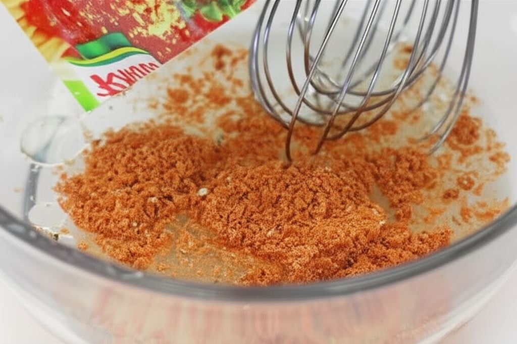Wymieszaj Fix Knorr z przecierem pomidorowym, cukrem, świeżo mielonym pieprzem i szklanką wody, następnie wlej na patelnię i zagotuj.