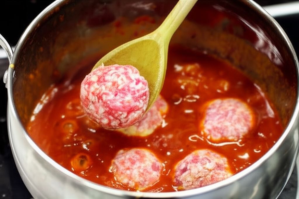 Umieść pulpeciki w sosie i gotuj je pod pokrywką przez 20 minut, obracając je co jakiś czas.
