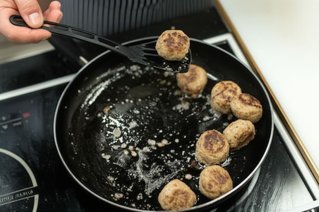 Rozgrzej olej na patelni. Smaż pulpeciki do złotego koloru. Przełóż na talerz.