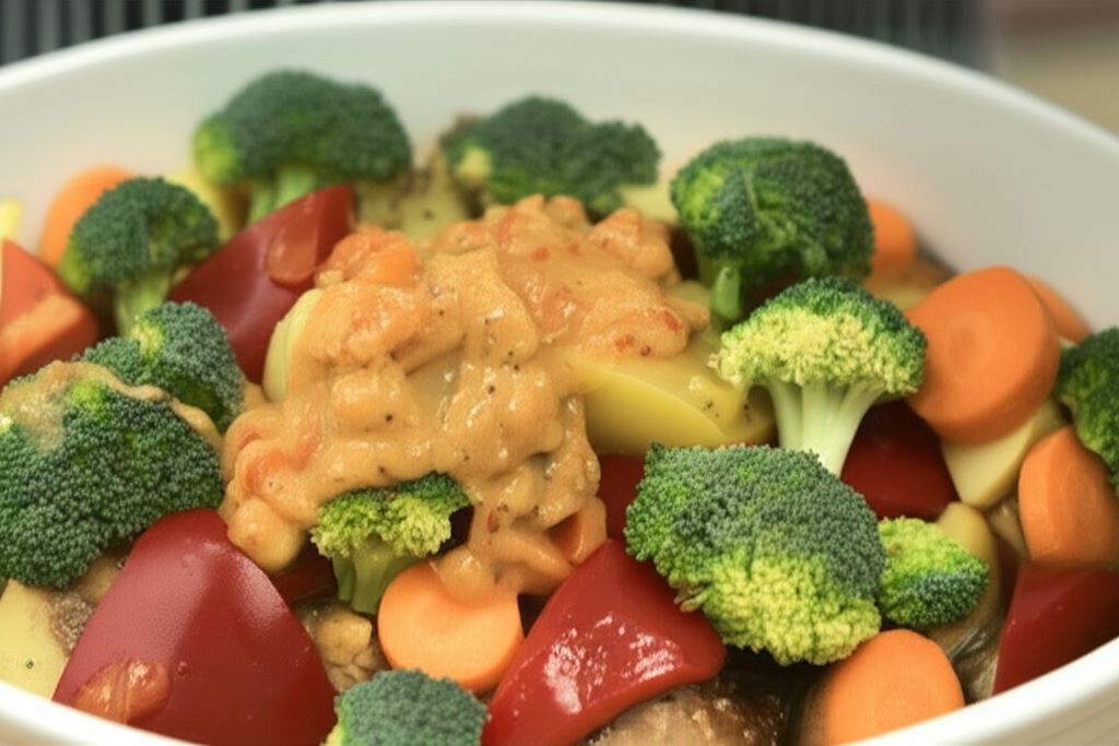 Odkryj nowy wymiar smaku z naszymi soczystymi pulpetami zapiekanymi w towarzystwie kolorowych warzyw! To danie to prawdziwa uczta dla podniebienia i oczu. Delikatne mięsne kulki z dodatkiem orzechów włoskich zyskują wyjątkowy aromat dzięki mieszance ziół i przypraw. Zapiekane razem z chrupiącymi warzywami w aromatycznym sosie pomidorowym tworzą pełnowartościowy posiłek, który zaspokoi nawet najbardziej wymagających smakoszy.
