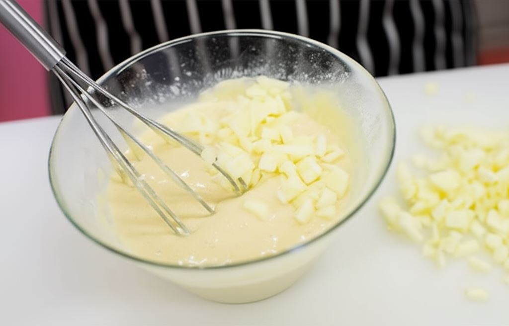 Jabłko obierz, potnij na drobne kawałki i połącz z ciastem.