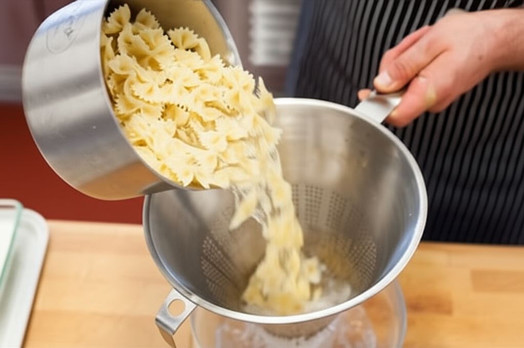 Przygotuj makaron, w wersji aldente, zgodnie z instrukcją na opakowaniu.