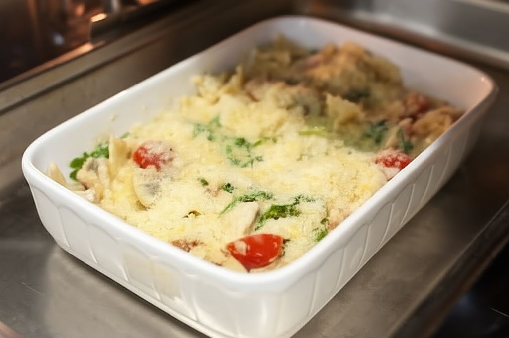 Kremowa Zapiekanka Makaronowa z Kurczakiem i Boczkiem